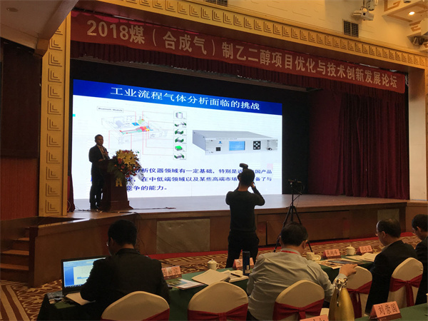 2018年11月15日,煤(合成氣)制乙二醇項目?jì)?yōu)化與技術(shù)創(chuàng )新發(fā)展論壇在山西太原黃河京都大酒店順利召開(kāi),湖北銳意總經(jīng)理熊友輝應邀出席會(huì )議,并作了以“激光拉曼光譜氣體分析儀的研發(fā)及應用案例分析”為主題的報告。