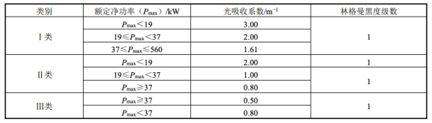 表二、GB 36886-2018排氣煙度限值要求